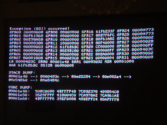 The problem is definitely happening in the code handler (execution address 80001A40, pretty early in the code handler I might add, although your code handler probably doesn't include the debugger).  It's accessing an illegal address - in particular, address 61F6E6BC (DAR gives the memory address, note it matches r12).  I think r16 is the po, which is also very close to your illegal address, so the chances are good that it's a code that loaded the po with a bad pointer, and the bad pointer then causes the game to crash.
