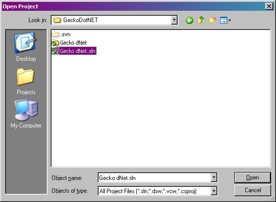 Navigate to the Gecko dNet.sln file.